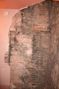 This is a typical old farmhouse which has grown organically over the years. A small cottage would have had rooms added, followed by widening of the footprint, and extending upwards to create a second floor. At each stage, flaws were introduced which over the years contributed to a gradual deterioration in the structural stability of the house. Walls were no longer tied together, ceiling and floor joists had become detached from the walls and were hanging in space, upper floor walls were leaning drunkenly outwards as the roof had lost structural integrity, and numerous chimney additions had added huge amounts of weight to the foundations and caused one end of the house to slowly sink into the underlying boulder clay.