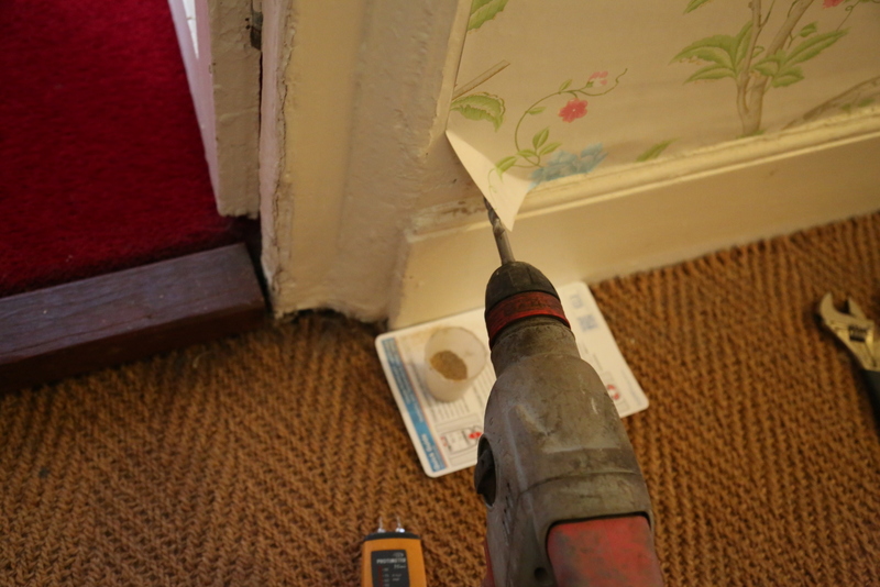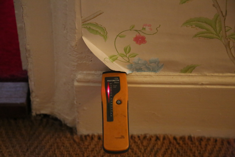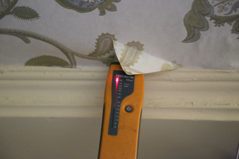 (There was NO sign of ANY dampness in ANY of the walls! Resistance meter readings are off the scale everywhere because the walls are conductive with organic materials in the plaster)