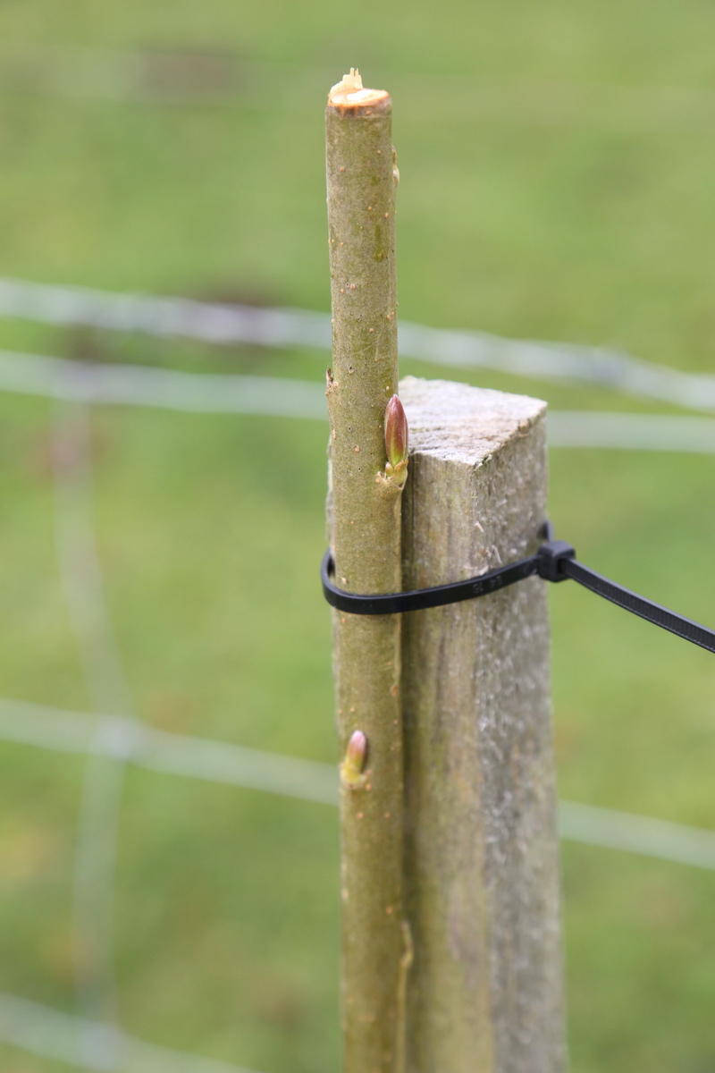 Year 1 - March / April: Trim the whips to a metre, and rub off any buds at low level - you want to encourage growth at the tip, not low down.